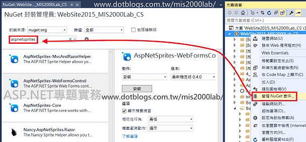 在 NuGet裡面,搜尋關鍵字「aspnetsprites」即可