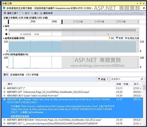 VS 2015 - Debug 在偵錯中, 分析CPU與記憶體使用量