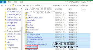 Win10的 IE 11 瀏覽器,Cookie放置路徑 (資料夾)