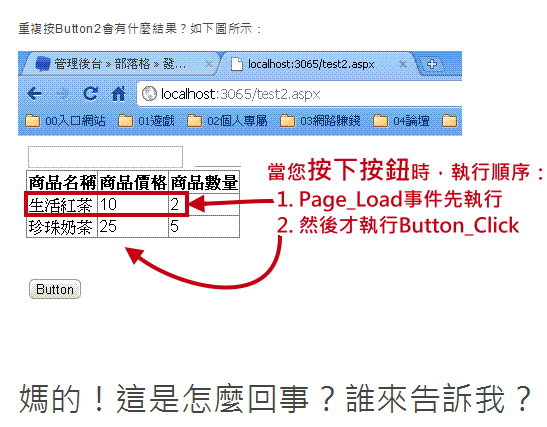 按下 Button按鈕以後,第一個執行 Page_Load事件