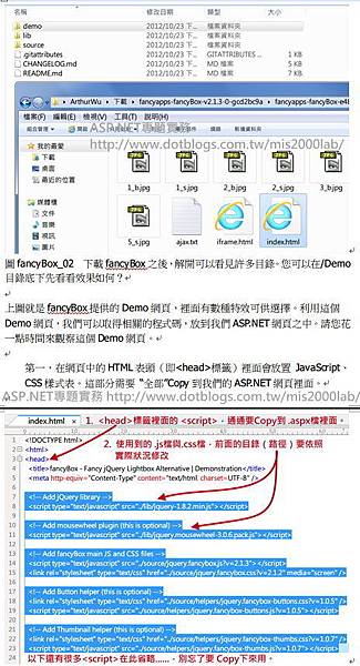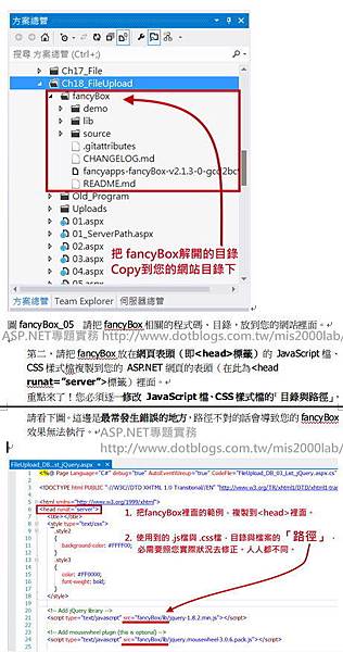 .aspx(畫面)的HTML原始檔 (藍色的字,就是 fancyBox套件需要加入的 JavaScript檔、CSS樣式檔)