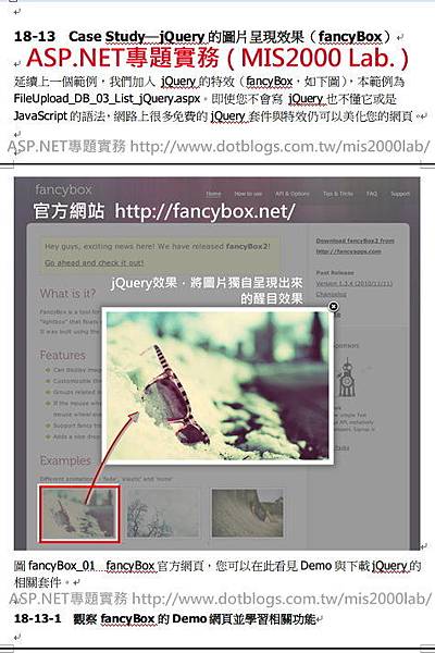 原本的範例,加上jQuery的「fancyBox套件」,讓圖片展示的時候,更有效果。