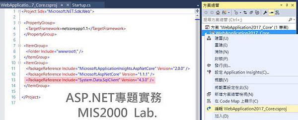 因為之前的 project.json設定檔在新版 ASP.NET Core & VS 2017已經掰掰了,所以這裡有異動!