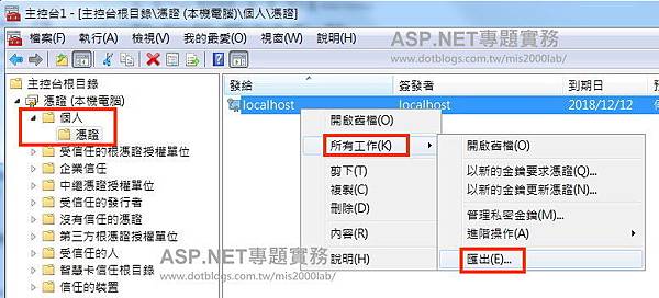 建議您立刻把SSL憑證匯出,完整匯出成 pfx格式,就會把上面三者匯出在同一個檔案內,以後可以移植、保存。