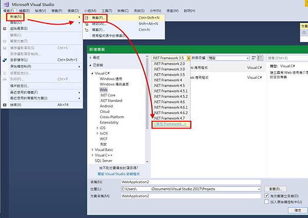 現在可以打開 Visual Studio,新增專案、新增網站時(如下圖)