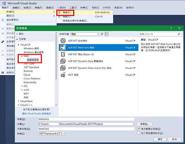 更新到 v15.6版的 VS 2017之後,以前可以新增「網站」,現在找不到了。