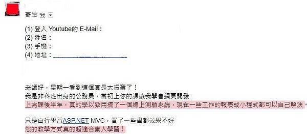 線上課程教學,遠距教學 (ASP.NET MVC 約75~100hr) https://dotblogs.com.tw/mis2000lab/2018/08/14/ASPnet_MVC_Online_Learning_MIS2000Lab
