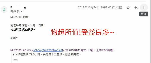 下面這位學員,原本不認識我。從外面的平台買到入門課程 並且看完以後,
