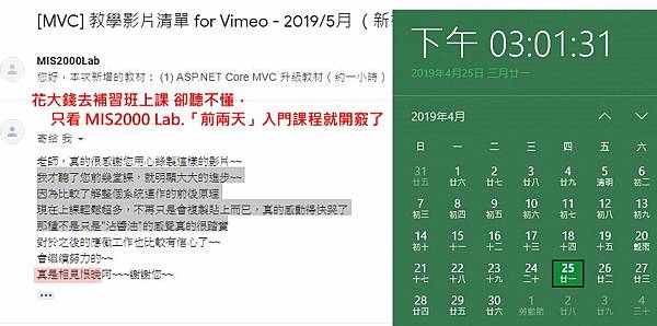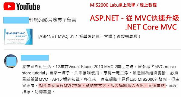 學員感言與推薦 - https://mis2000lab.medium.com/%E5%AD%B8%E5%93%A1%E5%8F%A3%E7%A2%91%E8%88%87%E6%8E%A8%E8%96%A6-mis2000lab-%E7%B7%9A%E4%B8%8A%E8%AA%B2%E7%A8%8B-asp-net-mvc-webapi-%E6%95%99%E5%AD%B8%E8%A6%96%E9%A0%BB-869112e651a2