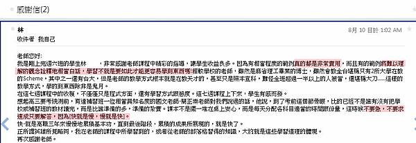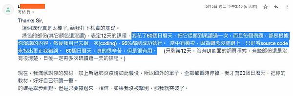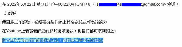 下面這位學員親身體驗「為什麼 線上課程 / 線上教程 比 實體課程(補習班的教室上課)」更好!