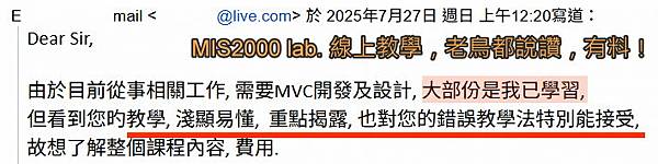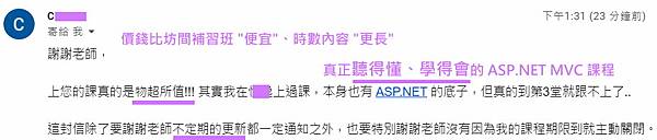學員感言與推薦 - www.dotblogs.com.tw/mis2000lab/2023/01/30/mis2000lab_MVC_onlineLearning2023