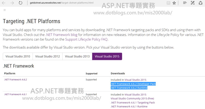 Q : 我的VS 2015已經升級最新版(Update),但建立新專案、新網站時,卻找不到 .NET 4.6.2 ????