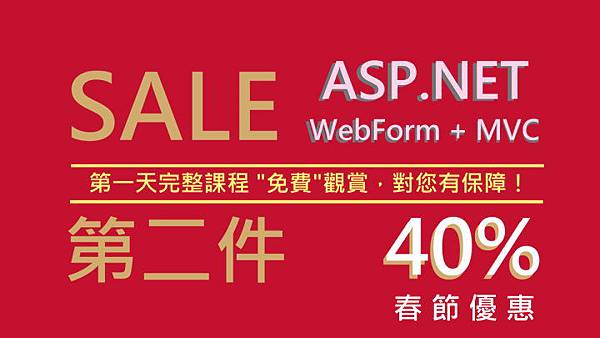 我每年在新年、農曆春節前都有一波折扣 -- ASP.NET遠距教學、線上課程(Web Form + MVC)